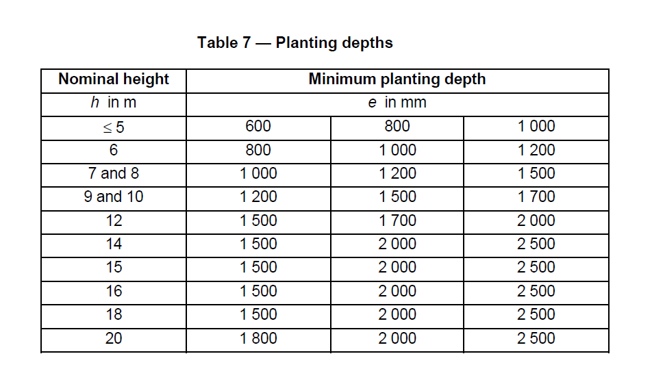 However, Table 7 in BS EN 40-2 does refer to minimum planting depth; automatically defining the tolerance of the root being planted too shallow as zero.