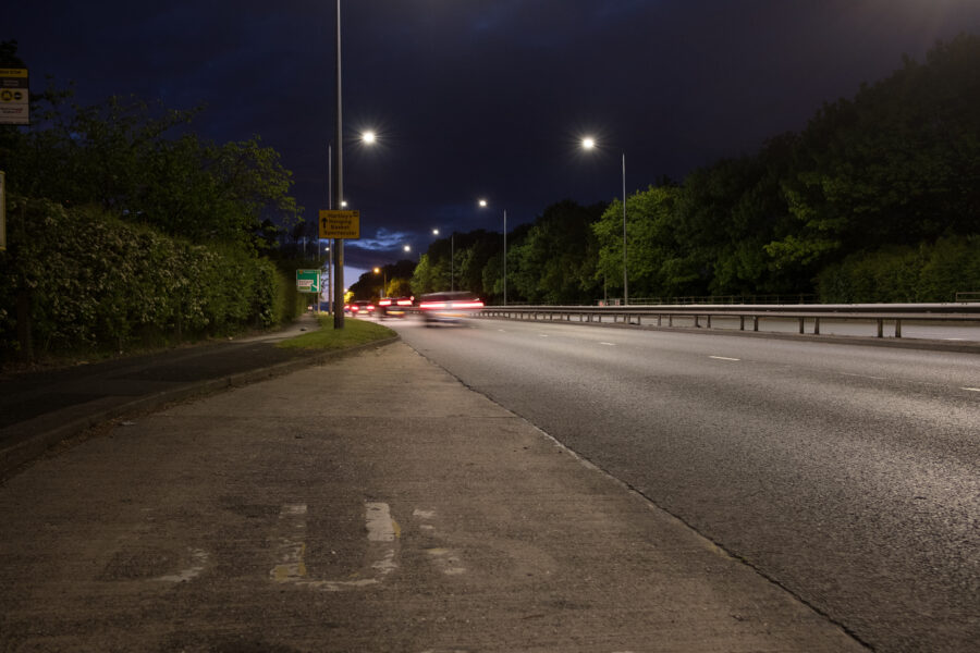 This section of A59 Northway was previously lit with 250w high pressure sodium luminaires on a part night switch regime, with every alternate column being switched off between 8pm and 6am with the exception of conflict areas which remained fully illuminated. The total previous energy consumption under the part night regime cost approximately £11,807.00 per annum for the 122 lanterns.