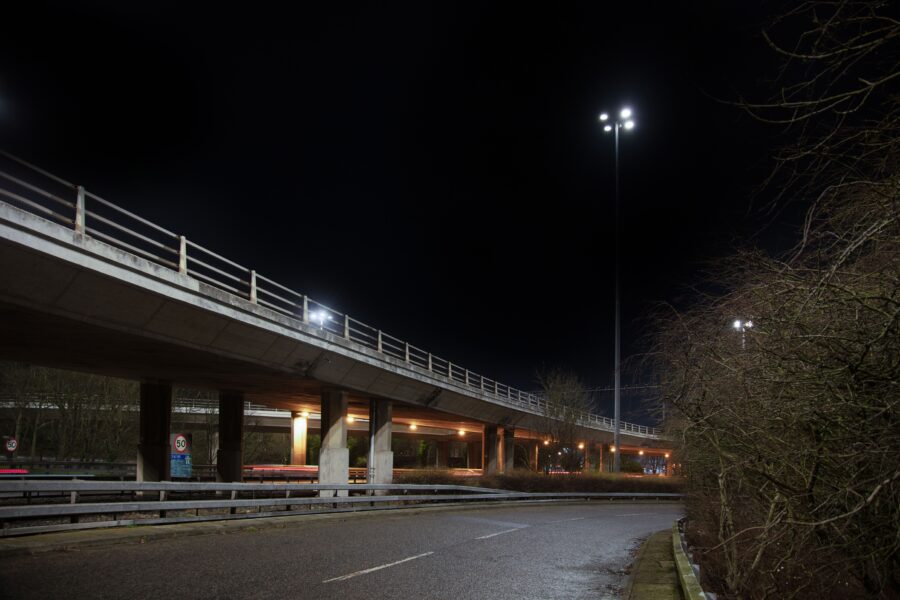 The multi-disciplinary contractors had already installed 52,000 new columns with efficient lanterns across the area. For the specialist high mast lighting, they worked with CU Phosco.